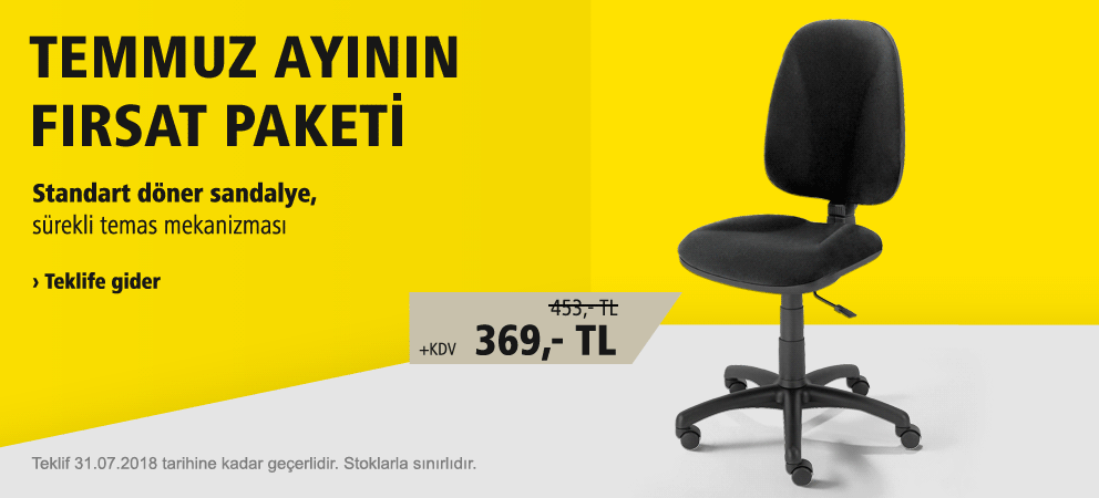 El arabası mı, çöp bidonu mu veya bir ofis sandalyesi mi? Yoksa daha da fazlasını mı sipariş etmek istiyorsunuz? Bizde ofis alanlarınızı kolayca baştan aşağıya donatabilirsiniz. Bunun için sadece CAD planlama hizmetinde görev alan deneyimli uzmanlarımızdan değil ayrıca komple ofis serilerinden faydalanabilirsiniz. Cazip tekliflerimiz içerisinden istediğiniz donanımı veya mevcut donanımlarınıza uygun dosya dolapları veya tekerlekli kesonlar seçmeniz yeterlidir. Örneğin, yüksekliği elektrikle ayarlanabilen, hem oturarak hem de ayakta durarak kullanılabilen yazı masası Upliner 2.0 tüm modern ofis donanımları için kesinlikle bir vazgeçilmezdir: Geleneksel yazı masaları ile karşılaştırıldığında, bu gibi yazı masaları ofis donanımlarının ergonomik gereksinimlerini daha da etkili bir şekilde karşılar. Tabii Dauphin veya Topstar veya Prosedia gibi diğer ofis sandalyelerimiz de öyle. Ofisinizin sıkıcı ve renksiz görünmemesi için ise ofisinize şaşırtacak gerçeklikteki yapay bitkiler ile renklendirebilir, lavanta, bonsai ve orkide ile mekanlarınıza büyüleyici bir atmosfer katabilirsiniz.