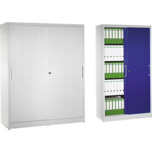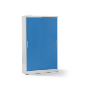 mauser – Sürgü kapılı dolap, 4 raflı dolap, y x g x d 1965 x 1200 x 500 mm, açık gri / açık mavi