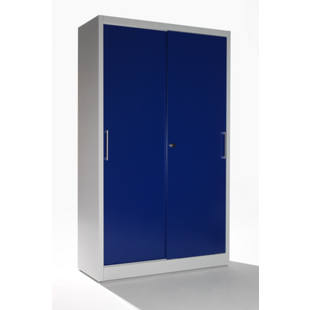 mauser – Sürgü kapılı dolap, 4 raflı dolap, y x g x d 1965 x 1200 x 420 mm, açık gri / ultramarin mavi