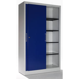mauser – Sürgü kapılı dolap, 4 raflı dolap, y x g x d 1965 x 1200 x 500 mm, açık gri / ultramarin mavi