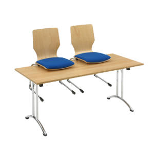 Katlanır masa , çift T çelik boru iskelet, bükülü kızaklı, genişlik 1600 mm, akçaağaç desen