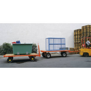 Çekici römork, 2 tekerlekli ve dairesel hareketli direksiyon, taşıma kapasitesi 2 t, yükleme alanı 2,0 x 1,0 m, içi dolu lastik tekerlekler
