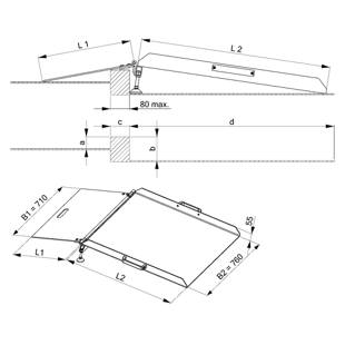 Rampa, yüksekliği ayarlanabilir, taşıma kapasitesi 300 kg, u x g 1300 x 760 mm